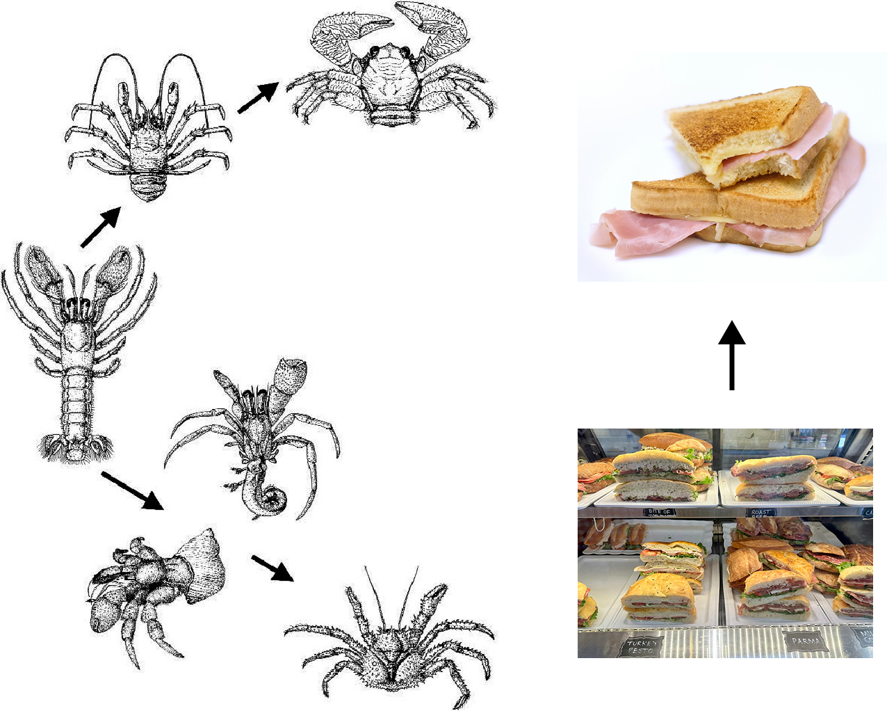 カニが何度もカニ形に進化してきたみたいに、サンドも最後はハムに収束するんだ。