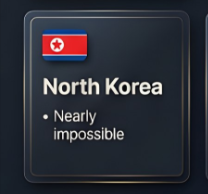 - 北朝鮮:ほぼ不可能