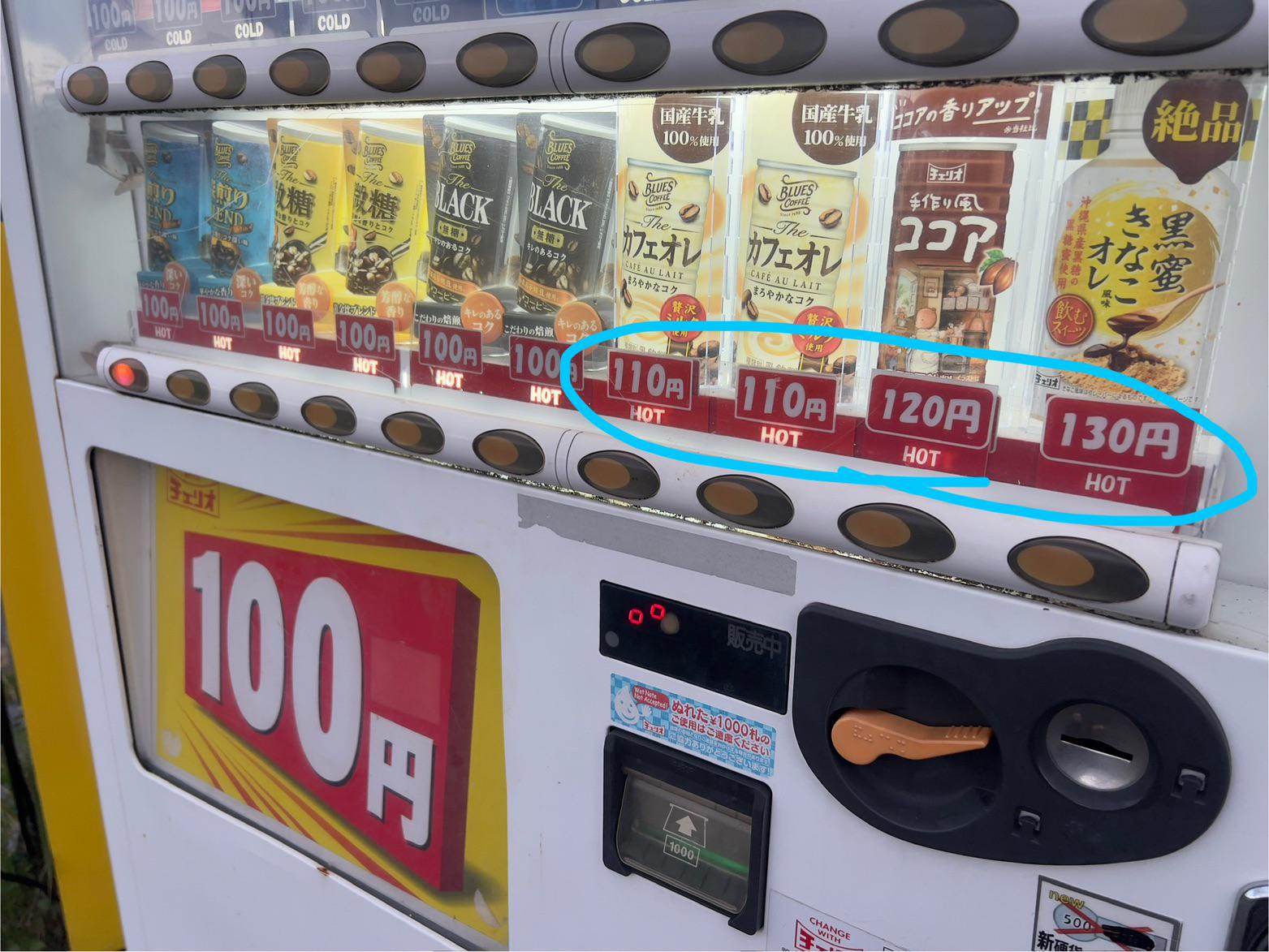 安い自販機は、たいてい駅とか人通りの多い場所から離れた工場の外とかにあるね。