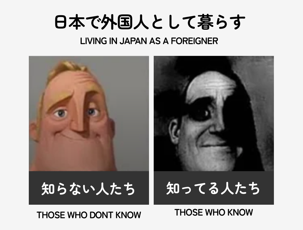 これは、日本に対して抱かれがちなイメージと、実際に住んでいる一部の外国人が感じている体験との「ギャップ」についてのミームだね。