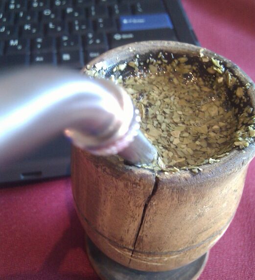 うちらはマテを回し飲みするのが普通で、みんな同じストロー(ボンビージャ)から飲むんだ。