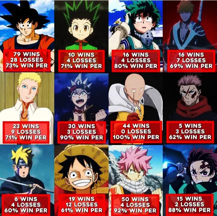 鬼滅やナルトなど各アニメ主人公の”勝率”を表した画像が海外で話題に(海外の反応)