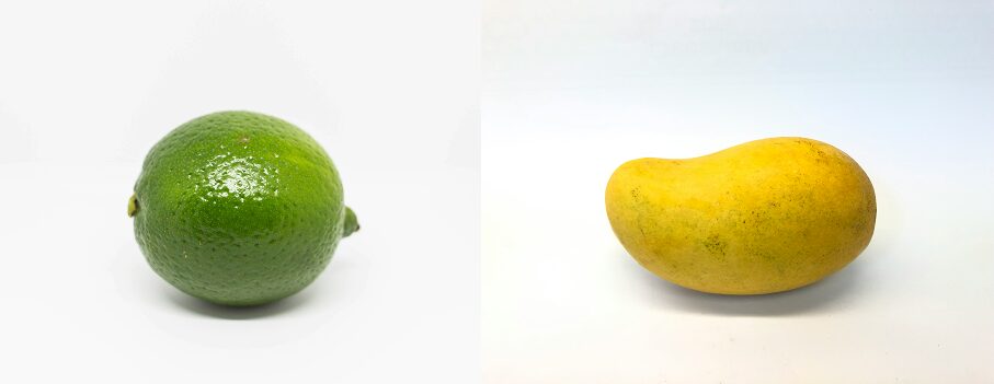 これはライムかもしれないし…、下手に描かれたマンゴーかもしれない…。