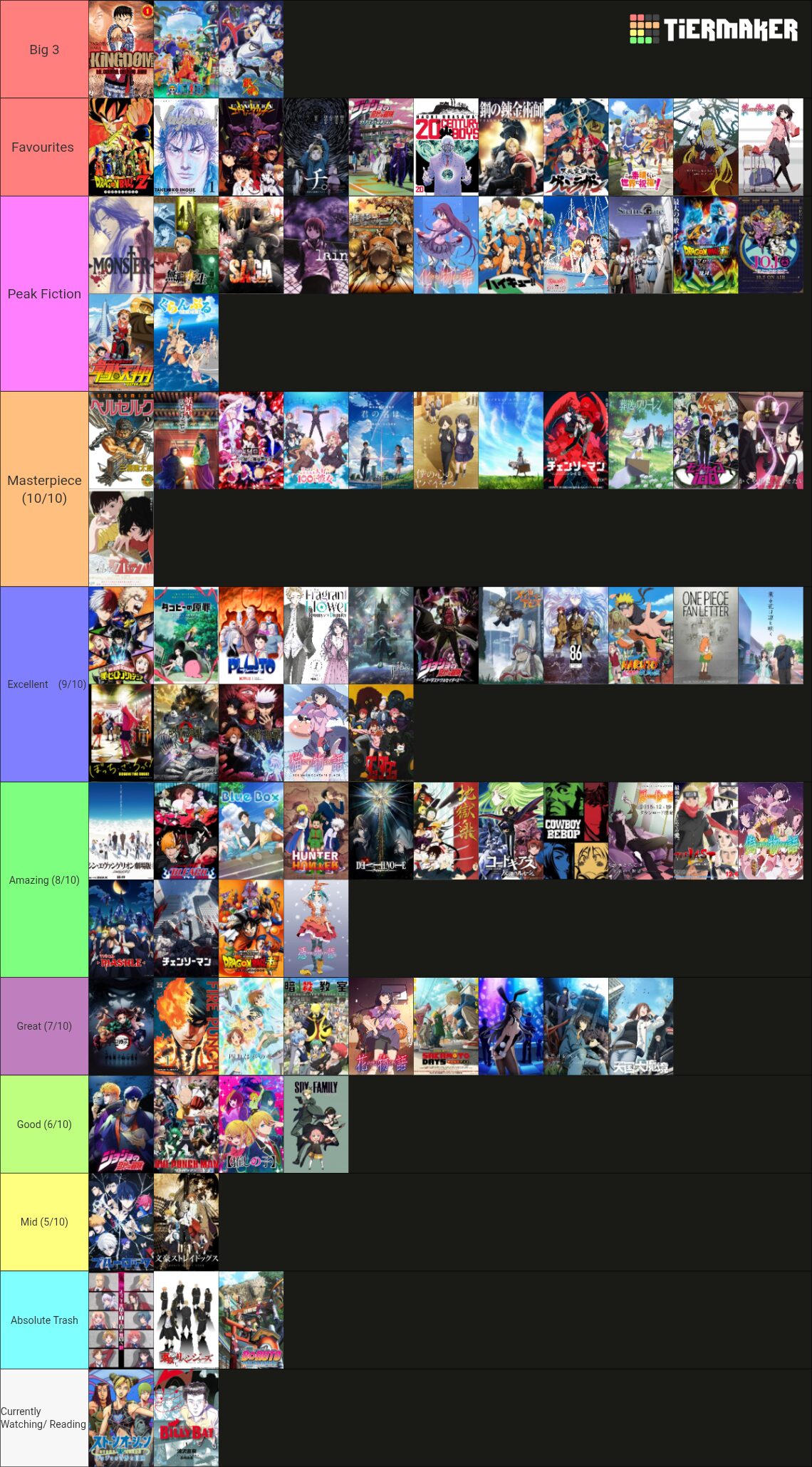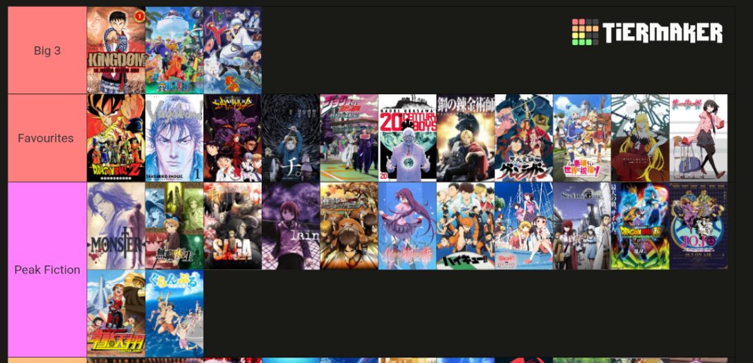 翻訳元:Reddit(r/MyAnimeList) / Updated my Animanga Tierlist