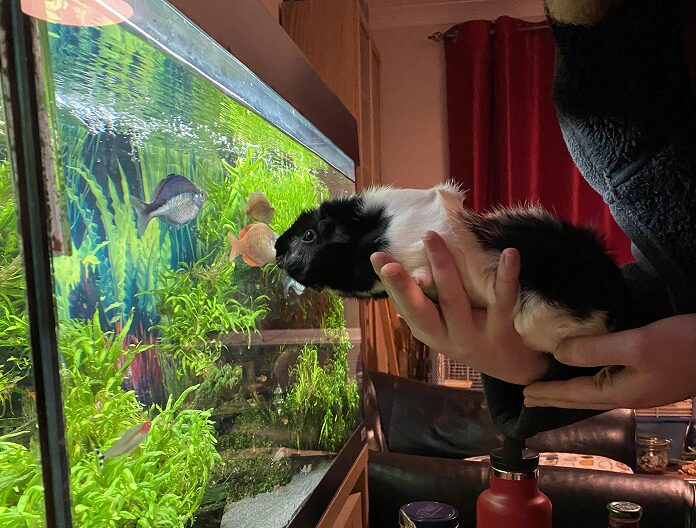 うちのモルモットが水槽をじーっと見てる写真が、まさにそれと同じ状況だわ。