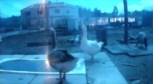 どっかのアヒル専用カメラのライブ配信に映り込んだ、彗星の通過を目撃するアヒルたち。
