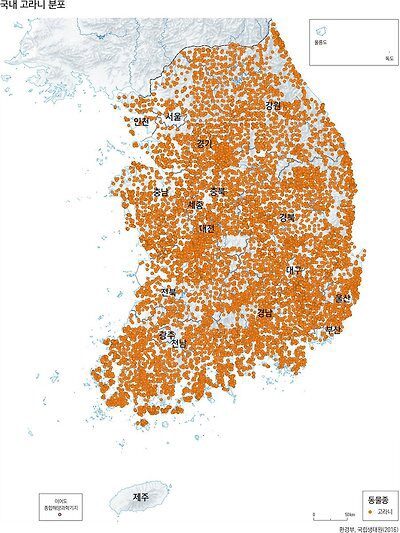 世界的には絶滅に瀕してるけど、生息数のほとんどが韓国に集中してるから、こっちじゃよくいる動物にすぎないの。
