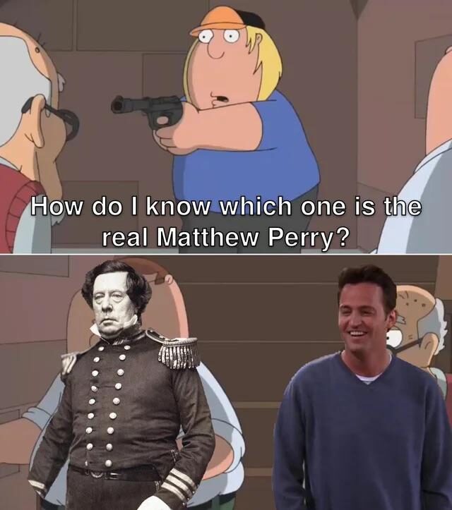 「どっちが本物のマシュー・ペリーか、どうやって見分けりゃいいんだ?」(画像の翻訳)