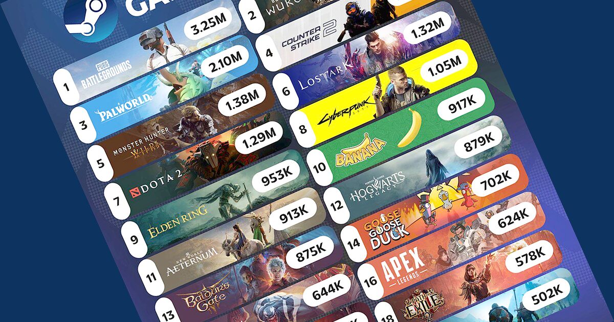Steamで最も同時接続者数が多いゲームトップ20だ。