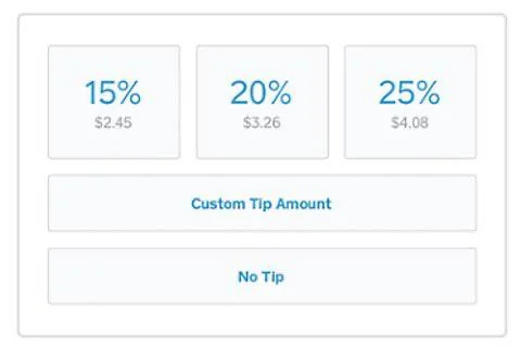 *以下の画像は、海外の飲食店でよく見られるチップの支払い選択画面。